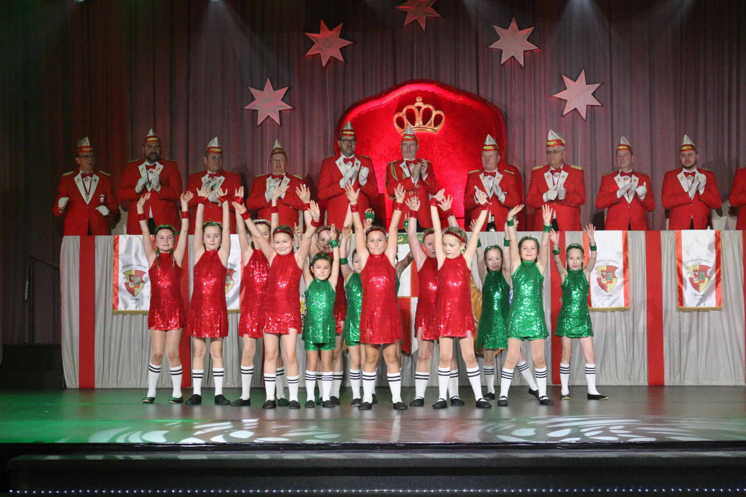Hier trainieren die 11-14 Jährigen fröhliche Schautänze, die jedes Jahr wieder uns und unser Publikum erfreuen und das Abendprogramm der Veranstaltungen abrunden. Auch außerhalb der Veranstaltungen zeigen sie in bunten Kostümen ihr Können.